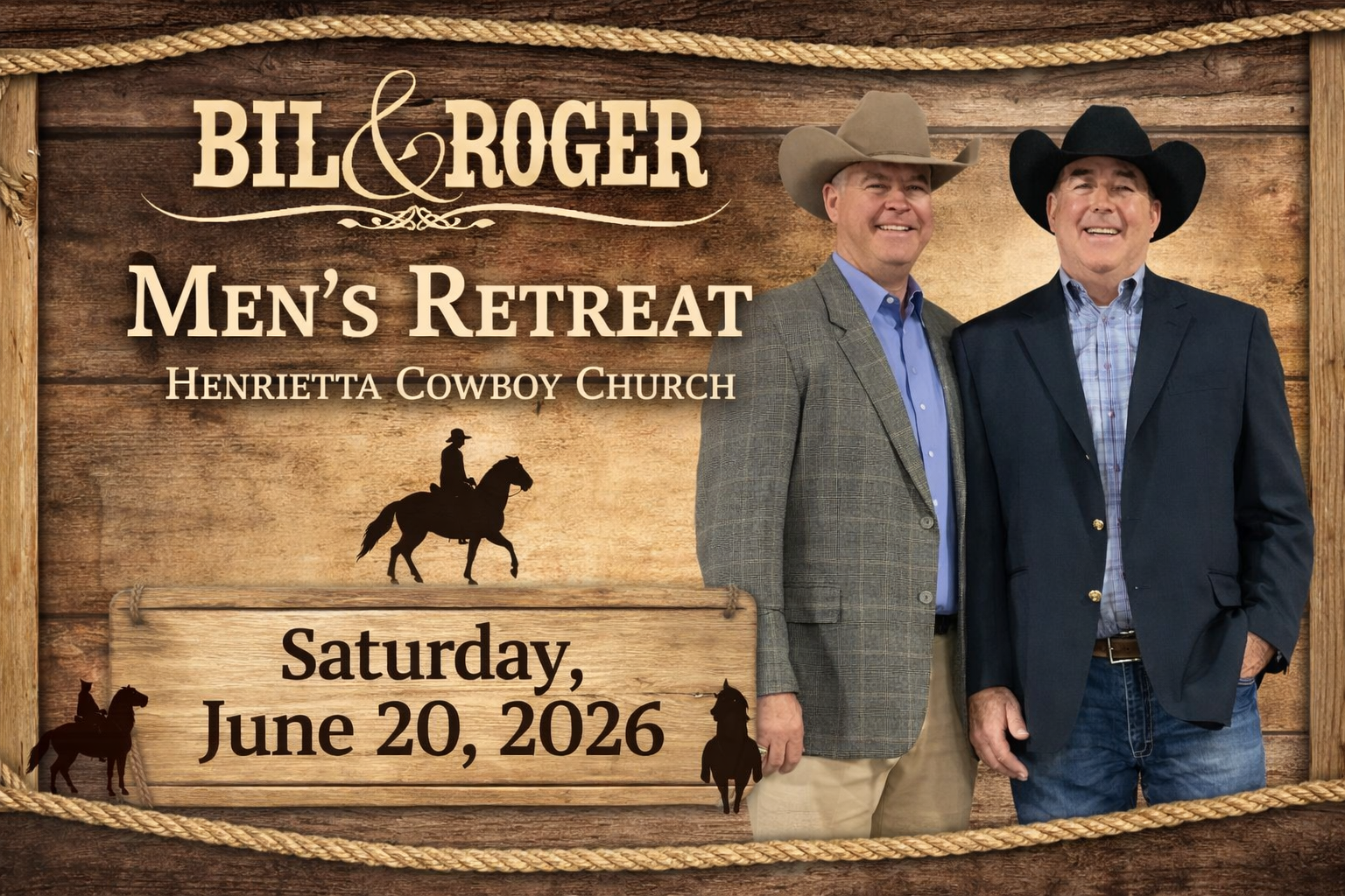 Join Bill & Roger Ministries for a powerful Men’s Retreat on Saturday, June 20th at Henrietta Cowboy Church in Henrietta, TX.