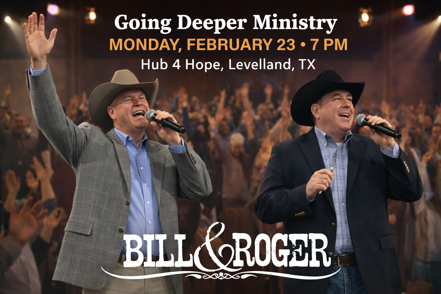 We’re excited to be with Going Deeper Ministry on Monday, February 23rd at 7:00 PM at Hub 4 Hope in Levelland, Texas.